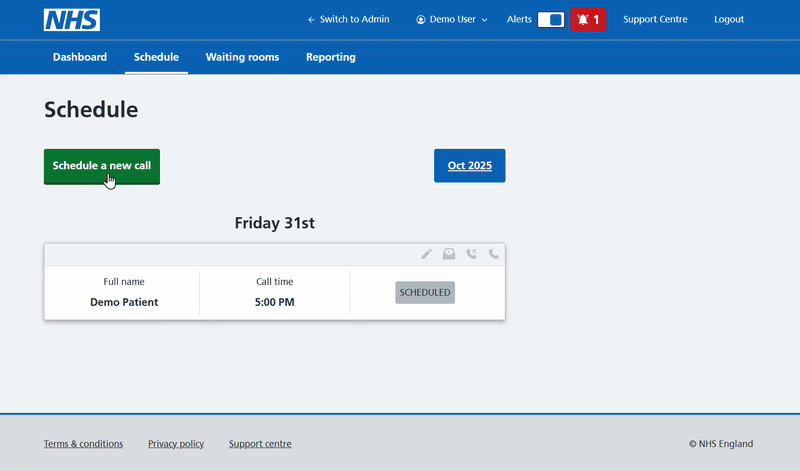 To schedule a new call, simply select the green 'Schedule a new call' button, to be offered call details for completion. The following details will need to be entered:-