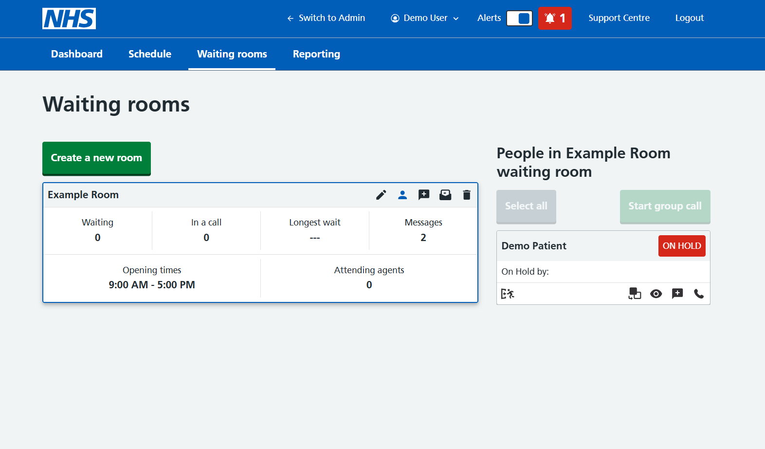 Whether a SQOD Waiting room or Scheduled consultation , video call features and functionality are the same in both features. The Agent/Clinician instigates the start of an appointment by either selecting the customer in a Waiting room to then start a call, or by starting a scheduled call .