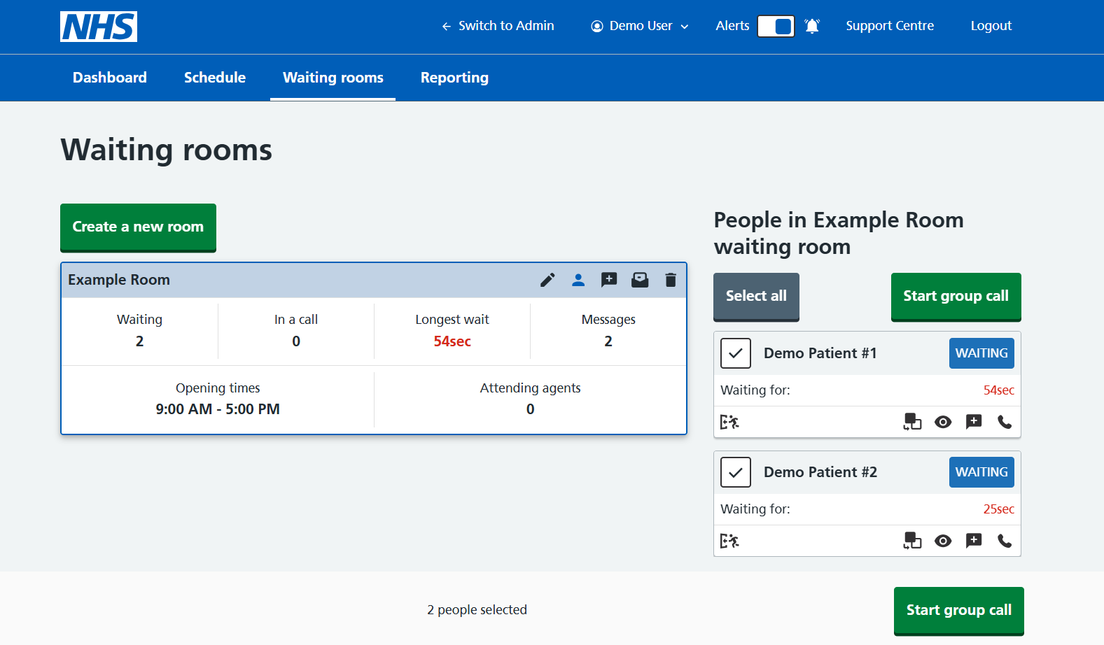 Group consultations can be made with ease on the platform. From the start of a call, an agent can join customers simultaneously or consecutively into a waiting room when they choose to.